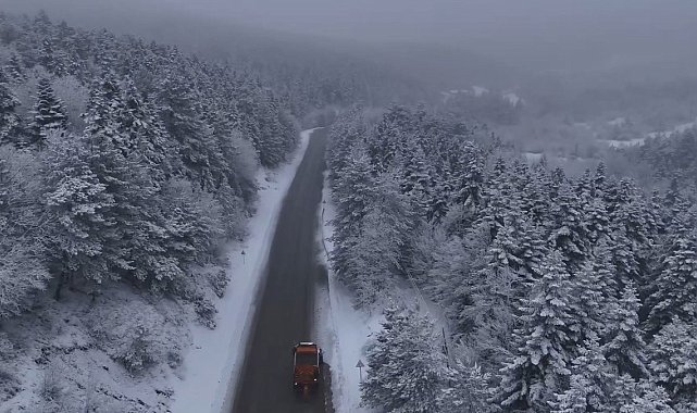 Karabük'te yüksek kesimlerde etkili olan kar yağışıyla birlikte beyaza bürünen ormanlık alanlar dronla görüntülendi.Sabah saatlerinde başlayan kar yağışı, özellikle kentin yüksek rakımlı bölgelerinde etkili oldu. Karabük-Bartın kara yolunun bin 30 rakımlı Ahmetusta Geçidi'nde yağışla birlikte ormanlık alanlar beyaz örtüyle kaplandı.Kar yağışı ve sisin etkili olduğu bölgede oluşan manzara havadan görüntülenirken, Karayolları ekipleri de ulaşımda aksama yaşanmaması için kar küreme ve tuzlama çalışması gerçekleştirdi.