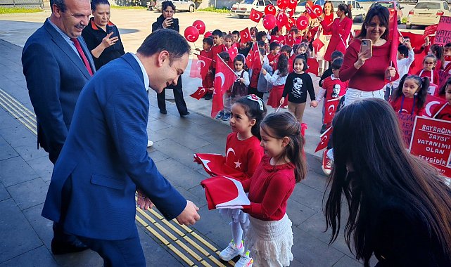 Aydın'ın Karpuzlu ilçesinde anaokulu öğrencileri, Türk bayrağına duydukları saygı ve sevgiyi sloganlarla dile getirerek Kaymakam Mustafa Bayram'a bayrak tesliminde bulundu.Karpuzlu Anaokulu öğrenci ve öğretmenleri, Türk bayrağına duydukları saygı ve sevgiyi ifade etmek amacıyla Hükümet Konağı'nı ziyaret etti. Ziyarette öğrenciler, hazırladıkları bayrak temalı sloganlar ve dövizlerle bayrağın önemine dikkat çekti. Program kapsamında minikler, Karpuzlu Kaymakamı Mustafa Bayram ile İlçe Milli Eğitim Müdürü Cemal Ağırol'a bayrak tesliminde bulundu. Karpuzlu Kaymakamlığı tarafından paylaşılan etkinlikte, öğrencilerin bayrak sevgisini yansıtan görüntüler de büyük beğeni topladı.Konu ile ilgili Karpuzlu Kaymakamlığı'ndan yapılan paylaşımda "Karpuzlu Anaokulu öğrenci ve öğretmenleri bayrağımıza duydukları saygı ve sevgiyi ifade etmek için bayrak sloganları ile Hükümet binamızı ziyarete gelerek Kaymakamımız Mustafa Bayram'a ve İlçe Milli Eğitim Müdürümüz Cemal Ağırol'a bayrak tesliminde bulundular" ifadeleri yer aldı.