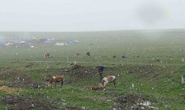 Kars'ta Mayıs ayında yağan lapa lapa kar şaşırttı. Yüksek kesimler kısa sürede beyaza bürünürken, hayvan yetiştiricileri ise kar yağışına hazırlıksız yakalandı.