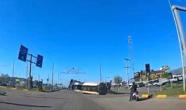 Gaziantep'in Nurdağı ilçesinde kavşaktan dönüş yapmaya çalışırken kontrolden çıkan akaryakıt yüklü tır yan yattı. Facianın eşiğinden dönülen kaza başka bir aracın kamerasına yansırken 2 kişi hafif yaralandı.Kaza, sabah saatlerinde Nurdağı ilçesi otoyol kavşağında meydana geldi. İddiaya göre, plakası ve sürücüsü öğrenilemeyen akaryakıt yüklü tır, kavşakta dönüş yapmaya çalışırken kontrolden çıkarak devrildi. Feci kaza sonrası olay yerine polis, sağlık ve itfaiye ekipleri sevk edildi. Olay yerine gelen itfaiye ekipleri tırın akaryakıt yüklü olması nedeniyle önlem alırken sağlık ekipleri ise hafif yaralanan 2 kişiyi ilk müdahale sonrası Nurdağı Devlet Hastanesi'ne kaldırdı.Kaza anı, kavşaktaki başka bir aracın güvenlik kamerasına yansıdı. Görüntülerde, kavşaktan dönmeye çalışan tırın bir anda kontrolden çıkarak devrilmesi ve ortalığı toz bulutu kaplaması yer aldı.Kaza ile ilgili soruşturma başlatıldı.