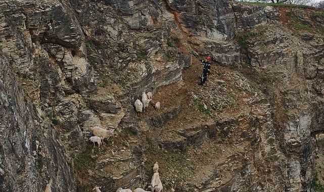 Kayalıklardaki sürüye cansiparane kurtarma