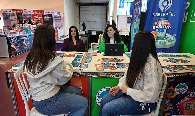 8'inci Kayseri Kitap Fuarı'nda çocukların kitap heyecanı yüzlere yansırken, Kayseri Büyükşehir Belediyesi bünyesindeki Alo 153 İletişim Merkezi ve Beyaz Masa ekipleri de vatandaşlarla birebir iletişim kuruyor.