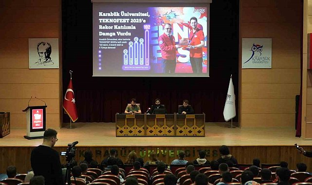 Karabük Üniversitesi'nde(KBÜ) TEKNOFEST 2026 Tanıtım Toplantısı düzenlendi.Düzenlenen programda yarışma süreci ve öğrencilere sunulan destekler paylaşıldı.Karabük Üniversitesi 15 Temmuz Şehitler Konferans Salonu'nda gerçekleştirilen programa; TEKNOFEST Birim Sorumlusu Öğr. Gör. Bahadır Furkan Kınacı, Araştırma Görevlisi Mesut Yılmaz ve Karabük Üniversitesi Millî Teknoloji Atölyesi Koordinatörü Muhammed Can Habergetiren katıldı.Toplantıda konuşan Kınacı, TEKNOFEST yarışmalarının kapsamının her yıl genişlediğini belirtti. 2025'te 53 ana ve 119 alt kategoride yarışma düzenlendiğini, 2026'da ise 52 ana kategori altında 127 alt kategorinin yer aldığını ifade etti.Roket teknolojilerinden insansız hava araçlarına, hava savunma sistemlerinden sosyal inovasyona kadar geniş bir yelpazede yarışma alanı bulunduğunu vurgulayan Kınacı, 20 Şubat'a kadar yapılan başvuruların ön niyet beyanı niteliğinde olduğunu kaydetti. Ürünlerin bu tarihe kadar tamamlanmasının beklenmediğini, sürecin kategori bazlı takvimlerle ilerlediğini söyledi.Karabük Üniversitesinin TEKNOFEST sürecinde öğrencilere önemli destekler sunduğunu belirten Kınacı, 2025 yılında 102 takımla yarışmalara katılım sağlandığını ifade etti. Bu takımlardan 53'ünün ön elemeyi geçtiğini, 18'inin finale kaldığını ve 4 takımın ödül aldığını aktardı.Üniversitenin teknik desteğin yanı sıra ekonomik ve organizasyonel destek de sağladığını dile getiren Kınacı, sponsor bulma ve bütçe yönetimi süreçlerinin öğrenciler için önemli bir deneyim alanı oluşturduğunu söyledi.Toplantıda ayrıca Karabük Üniversitesi bünyesinde faaliyet gösteren TEKNOFEST Atölyesi ve Millî Teknoloji Atölyesinin imkânları tanıtıldı.Millî Teknoloji Atölyesi Koordinatörü Muhammed Can Habergetiren, yaklaşık 625 metrekarelik kapalı alana sahip atölyenin fikirden ürüne uzanan süreçte öğrencilere kapsamlı destek sunduğunu belirtti.Atölyede lehimleme istasyonlarından CNC tezgâhlarına, üç eksenli freze makinelerinden üç boyutlu yazıcı ve tarayıcılara kadar birçok ekipmanın aktif olarak kullanılabildiği ifade edildi.