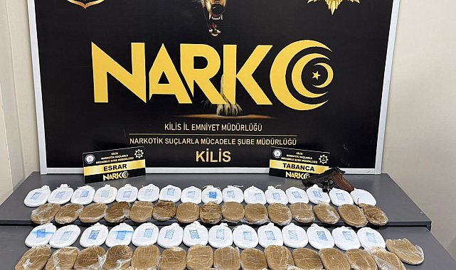 Kilis'te düzenlenen operasyonda 17 kilo 105 gram takoz esrar maddesi ile 1 ruhsatsız tabanca ele geçirildi. Olayla ilgili 1 şüpheli tutuklandı.Kilis Cumhuriyet Başsavcılığı koordinesinde; İl Emniyet Müdürlüğüne bağlı Narkotik Suçlarla Mücadele, İstihbarat, Terörle Mücadele ve Asayiş Şube Müdürlüklerince yürütülen koordineli çalışmalar kapsamında operasyon düzenlendi.Seve Barajı civarında durdurulan araçta bulunan D.K. isimli şahsın üzerinde ve aracında yapılan aramada 16 kilo 684 gram takoz esrar maddesi ele geçirildi.Şüphelinin bağlantılı olduğu değerlendirilen 4 farklı adreste eş zamanlı yapılan aramalarda ise 421 gram takoz esrar maddesi ile 1 ruhsatsız tabanca bulundu.Toplamda 17 kilo 105 gram takoz esrar maddesi ve 1 ruhsatsız tabanca ele geçirilirken, D.K. hakkında "Uyuşturucu veya Uyarıcı Madde Ticareti Yapmak (TCK 188)" suçundan işlem yapıldı.