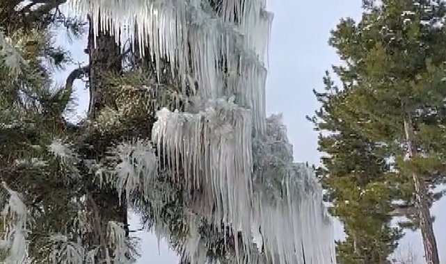 ADANA (İHA) – Adana'nın Saimbeyli ilçesinde yoğun kar yağışıyla çam ağaçları buz tuttu, oluşan buz sarkıtları, görsel şölen oluşturdu.Saimbeyli ilçesine bağlı Gökmenler Mahallesi'nde kar yağışı etkili oldu. Yağan karla birlikte çam ağaçları buz tuttu, oluşan uzun buz sarkıtları doğada görsel şölen sundu. Beyaz örtüyle kaplanan bölgede, çam ağaçlarının dallarından aşağı doğru uzayan metrelerce buz sarkıtları ile kar manzarası aynı karede buluştu.Saimbeyli Belediyesi ekipleri de yoğun kar yağışının ardından harekete geçti. Belediye Başkanı Mahmut Dal'ın koordinesinde Fen İşleri Müdürlüğü'ne bağlı ekipler, ilçenin yüksek rakımlı mahallelerinde kapanan yolları açmak için çalışma başlattı.Kar küreme ve yol açma çalışmalarının aralıksız sürdüğü bildirildi.
