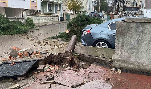 Kocaeli'nin Körfez ilçesinde rüzgarın etkisiyle devrilen 12 metrelik ağaç park halindeki otomobilin üzerine düştü. Elektrik ve telefon hatlarının koptuğu olayda yol trafiğe kapandı.