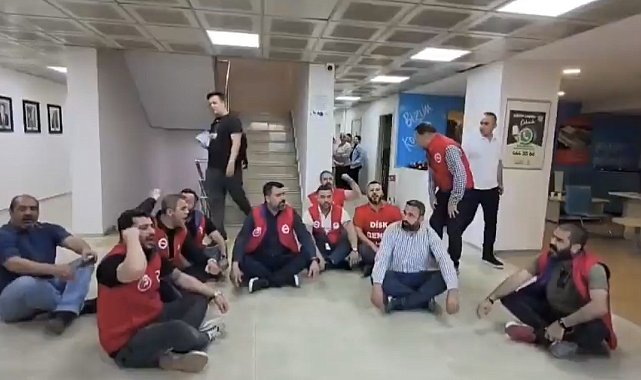 İzmir'de Konak Belediyesinde çalışan işçiler, Toplu İş Sözleşmesi (TİS) görüşmelerinde elde edilen geriye dönük haklarının ödenmemesi nedeniyle belediye binası içinde başlattıkları oturma eylemini sürdürüyor.