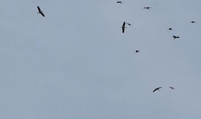 Kozan semalarında leyleklerin göç yolculuğu mest etti
