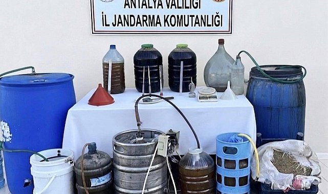 Antalya İl Jandarma Komutanlığınca, kaçak alkol ve sahte ürün ticaretine yönelik yürütülen çalışmalar kapsamında Kumluca ilçesinde operasyon düzenlendi.Kumluca Cumhuriyet Başsavcılığının talimatları doğrultusunda gerçekleştirilen operasyonda, şüpheli M.S'nin ikametinde arama yapıldı. Aramada yüksek miktarda kaçak alkol ve üretim ekipmanları ele geçirildi.Operasyonda, 800 litre kaçak alkol, 10 kilogram anason, 5 alkol ölçüm aparatı, 1 hassas terazi, 1 çelik damıtma cihazı ve bidonu, 5 plastik damıtma bidonu, 2 plastik varil, 1 cep telefonu, 1 ruhsatsız av tüfeği, 7 av tüfeği fişeği ve 1 alkol damıtma hunisi ele geçirildi.Olayla ilgili adli tahkikatın başlatıldığı bildirildi.