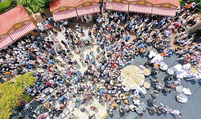 Manisa 486. Uluslararası Mesir Macunu Festivali çerçevesinde düzenlenen Gastronomi Panayırı'nda, dev tencerede hazırlanan 2 tonluk bahar pilavı vatandaşlara ikram edildi.