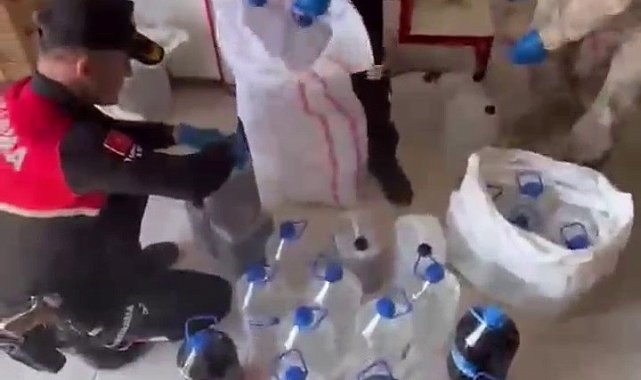 Markette satışa hazır litrelerce kaçak alkol ele geçirildi