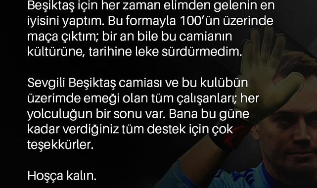Beşiktaş ile yollarını ayıran kaleci Mert Günok, sosyal medya hesabından bir veda mesajı yayımladı.