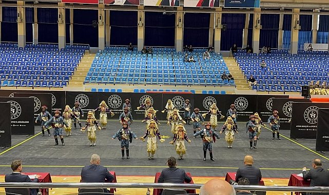 Aydın'da düzenlenen halk oyunları yarışmasında sahneye çıkan minik efeler, birincilik için performanslarını sergilerken, Söke Felakşan Fırat İlkokulu folklor ekibi il birincisi oldu.
