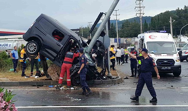 Muğla'da trafik kazası: Araç direğe çarpıp havada asılı kaldı