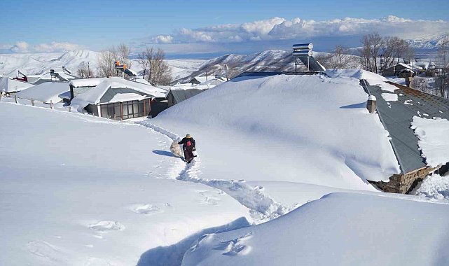 Muş'ta kış mevsimi boyunca etkili olan yoğun kar yağışı nedeniyle bin 800 rakımlı Yukarıyongalı köyünde kar kalınlığı 2 metreyi aştı. Evleri kar altında kalan köylüler, küreklerle tünel açarak günlük yaşamlarını sürdürmeye çalışıyor.Muş'ta etkisini sürdüren yoğun kar yağışı, merkeze bağlı bin 800 rakımlı Yukarıyongalı köyünü adeta kara gömdü. Kar kalınlığının yer yer 2 metreyi aştığı köyde evler tamamen beyaz örtü altında kaldı. Muş'a yaklaşık 50 kilometre uzaklıktaki Yukarıyongalı köyü, son yılların en çetin kış mevsimlerinden birini yaşıyor. Yüksek rakımı nedeniyle yoğun yağış alan köy, ilkbahar mevsimine de kar altında girdi. Kar kalınlığının 2 metreyi aştığı yerleşim yerinde evlerin büyük bölümü kar altında kalırken, vatandaşlar adeta seferber oldu. Köy sakinleri, kapılarını açabilmek ve günlük ihtiyaçlarını karşılayabilmek için küreklerle kar küreme çalışmasını sürdürüyor. Evlerinden dışarı çıkabilmek için iki kişinin yan yana geçebileceği genişlikte tüneller açan köylüler, bu şekilde ulaşımı sağlıyor.Hayvancılıkla geçim sağlanan köyde özellikle kış aylarında işlerin daha da ağırlaştığını söyleyen besicilerden Eşref Omur, günlük yaşamın adeta bir mücadeleye dönüştüğünü kaydederek, "Bizim köyde kar çok yağıyor. Hatta metrelerce kar yağıyor. Köyle ova arasındaki mesafe sadece 5 kilometre olmasına rağmen, orada hiç kar yokken burada evler adeta karın altında kaybolmuş durumda. Öyle ki yerle çatı, kardan dolayı birleşmiş durumda. İnsanlar komşularına giderken büyük zorluk yaşıyor. Ulaşım her konuda sıkıntılı. Köyde hayvancılık yapılıyor ve kışın ciddi şekilde zorlanıyoruz. Komşuya gitmek bile başlı başına bir mücadeleye dönüşmüş durumda. Sabah erkenden kalkıp adeta bir kepçe gibi kar temizliyoruz. Damların üzerini, bacaları ve kapı önünü temizleyerek güne başlıyoruz. Bu şekilde günlük işlerimizi yapmaya çalışıyoruz ama gerçekten çok zorlanıyoruz" dedi.Kar nedeniyle çatıya doğrudan karın üzerinden çıktıklarını anlatan Köylülerden Eyüp Omur, her sabah ilk iş olarak evlerinin önünü temizlediklerini belirtti. Omur, ev girişlerinin tünel görünümü aldığını, tüm hanelere bu dar koridorlardan ulaşıldığını aktararak, "Bizim köyün rakımı bin 850. Köy, ovadan sadece 5 kilometre uzaklıkta ama ovada kar yok; her yer siyah görünüyor. Burada ise iki metre kar var. Kar, yeri ve çatıyı adeta birleştirmiş durumda. Biz çatıya karın üzerinden çıkıyoruz. Her sabah kalkıp önce evimizin önünü temizliyoruz. Evlerin önü tünel gibi olmuş; bütün evlerin girişine tünellerin arasından gidiliyor. Komşulara gitmek için tünel gibi yollar açıyoruz. Açtığımız dar yollardan komşulara gider, ahırlara gider, hayvanların yanına ulaşırız. Burada kış çok uzun sürüyor; 5-6 ay boyunca kış şartlarıyla mücadele ediyoruz" şeklinde konuştu.