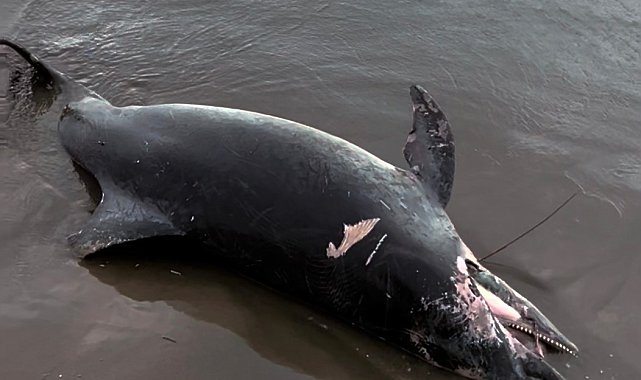 Adana'nın Karataş ilçesinde ölü yunus sahile vurdu.