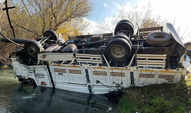 Osmaniye'de kontrolden çıkan turp yüklü kamyon köprü korkuluklarını kırarak dereye devrildi. Kazada kamyon şoförü yaralandı.