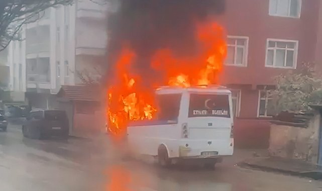 Park halindeki yolcu minibüsü alev topuna döndü