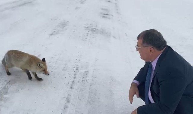 Artvin'in Şavşat Belediye Başkanı Durmuş Aydın, Sahara Geçidi'nden aracıyla geçerken karşılaştığı tilkiye yiyecek verdi.Artvin'in Şavşat ilçesinde Belediye Başkanı Durmuş Aydın, Sahara Geçidi'nde aracıyla seyir halindeyken karlı yolda bir tilkiyle karşılaştı. Yoğun kar yağışının etkili olduğu bölgede yol kenarında duran tilkiyi fark eden Aydın, aracını durdurarak aşağı indi. Soğuk hava ve kar nedeniyle yiyecek bulmakta zorlandığı değerlendirilen tilkiye yiyecek veren Başkan Aydın, hayvanla bir süre ilgilendi. Başkan Aydın'ın tilkiye, "Sen ne güzelsin, ne güzel yüzün var. Görüşürüz bay bay" diyerek seslenmesi dikkat çekti.Genellikle insanlardan kaçan ve ürkek yapısıyla bilinen tilkinin korkmadan yaklaştığı anlar ve sakin tavırları, cep telefonu kamerasıyla kaydedildi.