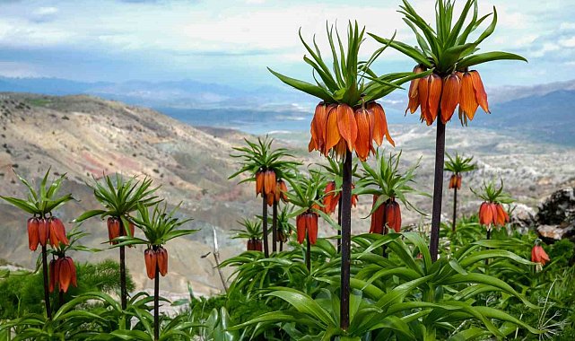Diyarbakır'ın Ergani ilçesindeki Sakız Dağı'nda kayalıklar arasında açan ters laleler, baharda görsel bir şölen oluşturuyor.