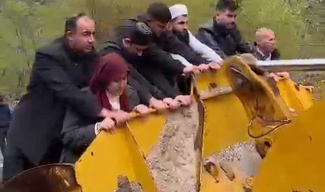 Sel yol vermeyince cenaze iş makinesiyle taşındı