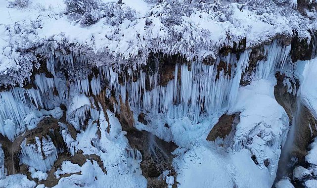 Sivas'ta bulunan ve her mevsim farklı güzelliğe bürünen Dipsizgöl ve şelalesi, yağan kar ile birlikte eşsiz manzaralar oluşturdu. Timsah gözüne benzetilen Dipsizgöl soğuk havaya rağmen donmazken Dipsizgöl Şelalesi'nde devasa buz sarkıtları oluştu. Sivas'ın Karadeniz'i olarak adlandırılan bölge, dron ile havadan görüntülendi.