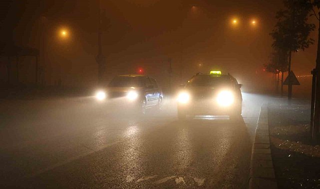Sivas'ta sıcaklıkların eksi 2 dereceye kadar düşmesiyle birlikte akşam saatlerinde kent, görüş mesafesini neredeyse yok eden yoğun sis örtüsünün altında kaldı.