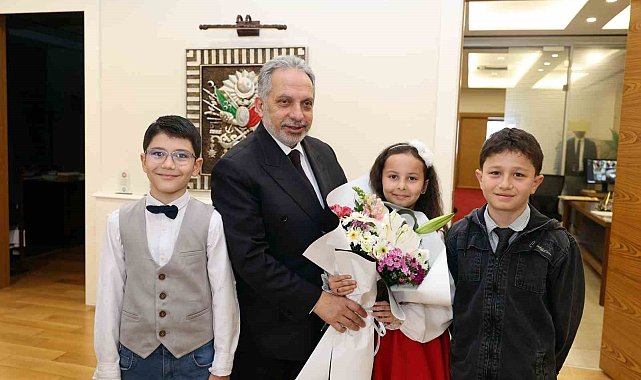 Talas Belediye Başkanı Mustafa Yalçın, 23 Nisan Ulusal Egemenlik ve Çocuk Bayramı kapsamında Cemil Baba İlkokulu 4. sınıf öğrencileri Umut Mert Kahraman, Muhammed Ömer Yüksel ve Merve Nisa Özdemir'i makamında ağırladı. Ziyarete İlçe Milli Eğitim Şube Müdürü Ahmet Çakır, Okul Müdürü Sami Aydın ile öğretmenler de eşlik etti.