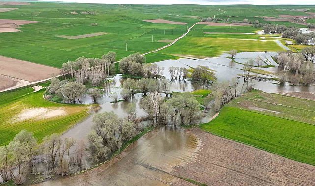 Yozgat'ta mevsim normallerinin üzerinde seyreden yağışlar bazı dere ve çaylarda taşkınlara neden oldu. Sarıkaya ilçesinden geçen Kanak Çayı'nın taşması sonucu çevredeki bazı tarım arazileri su altında kaldı. Taşkınlar dron ile görüntülendi.Yozgat'ta son günlerde etkili olan yağışlar ve Akdağmadeni bölgesinde eriyen kar suları nedeniyle Yahyasaray Barajı'ndan bırakılan suyla Kanak Çayı'nın debisi yükseldi. Artan su seviyesi nedeniyle Sarıkaya ilçesinden geçen çayın bazı bölümlerinde dere yatağı taştı.Taşkınlar, çay boyunca yer alan Karayakup, Terzili, Kadıllı, Akbucak ve Büyükören köylerindeki tarım arazilerinde etkili oldu. Suyun taşmasıyla birlikte bazı ekili alanlar zarar görürken, taşkın anları dron ile görüntülendi.Akbucak köyünde yaşayan ve tarlası su altında kalan Enes Salih Özdem, köylerinde yoğun yağışların ardından Yahyasaray Barajı kapaklarının açılmasıyla taşkınların meydana geldiğini belirterek, "Köyümüzde yoğun yağışlar olması neticesiyle Yahyasaray Barajı'nın da buna bağlı kapaklarının açılmasından dolayı köyümüzde bayağı bir taşkın mevcut oldu. Tarım arazilerimizin zarar gördüler. Su taşkınları oldu. Tarımsal faaliyetlerimizi engelleyecek durumlar oldu. Olumlu yönleri ise hayvan çeşitliliğimiz arttı. Ördekler, balıkçıl ve çeşit çeşit kuşlar geldi. Doğa iyice yeşerdi. Hayvanlar için güzel oldu. Hayırlısı buymuş diyelim" dedi.Bölgedeki çiftçiler, taşkın sonrası bölgede suyun çekilmesi ve tarımsal faaliyetlere yeniden başlamayı bekliyor.