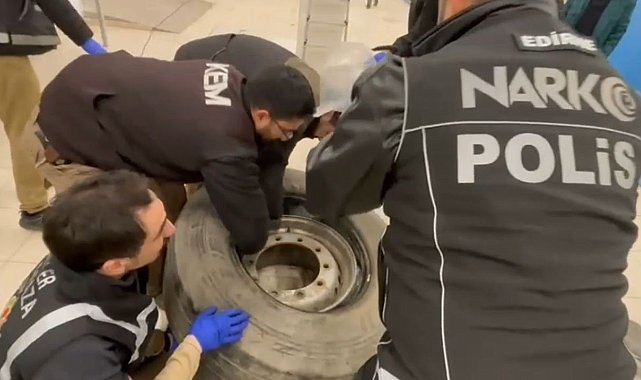 Edirne'de polis ekiplerince gerçekleştirilen başarılı operasyonda, Hamzabeyli Gümrük Kapısı'nda tırın lastiğine gizlenmiş yüklü miktarda uyuşturucu madde ele geçirildi.