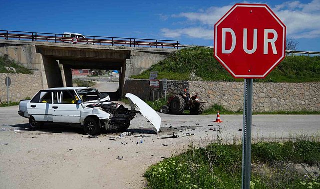 Traktör ile otomobil kafa kafaya çarpıştı: 5 yaralı