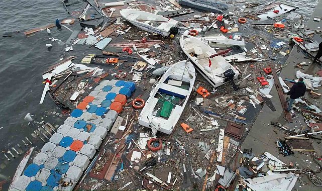 İstanbul'un Tuzla ilçesinde etkisini artıran şiddetli fırtına ve sağanak yağış, sahil kesiminde büyük zarara yol açtı. Fırtına ile birlikte yükselen dalgalar, kıyıda demirli çok sayıda tekneyi sürükledi.Şiddetli dalgalar nedeniyle bazı tekneler alabora olurken, bazıları parçalanarak kullanılamaz hale geldi, bazı teknelerin ise battığı öğrenildi. Sahil boyunca teknelerin birbirine çarptığı, bağlama halatlarının koptuğu ve iskelelerde hasar oluştuğu görüldü.Olayın ardından tekne sahipleri sahile gelerek teknelerini kurtarmak ve daha fazla zarar oluşmasını önlemek için kendi imkânlarıyla önlem almaya çalıştı. Yapılan ihbarlar üzerine bölgeye Sahil Güvenlik, polis ve belediye ekipleri sevk edildi. Ekiplerin bölgede güvenlik önlemleri ve hasar tespit çalışmalarını sürdürdüğü bildirildi.Fırtına sonrası sahil kesiminde oluşan tahribat ve teknelerde meydana gelen ağır hasar havadan görüntülendi. Dronla kaydedilen görüntülerde, alabora olan tekneler, parçalanan gövdeler ve sahil boyunca oluşan hasarın boyutu net şekilde ortaya çıktı.