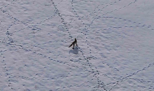 Van'ın karla kaplı yüksek kesimlerinde aç kalan bir tilkinin, avını yakalamak için sergilediği ustalık ve kararlılık dron kamerasına yansıdı.