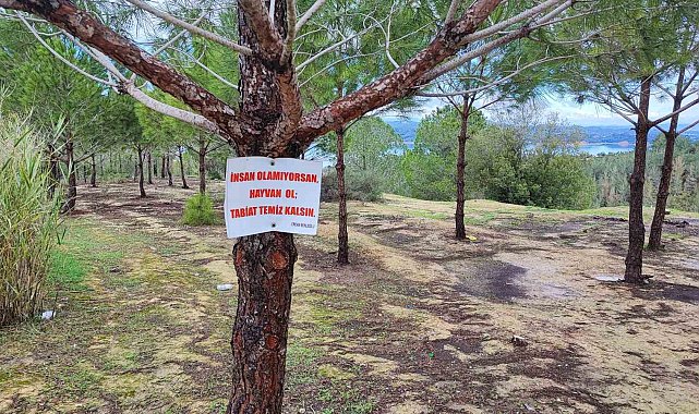 Vatandaşın ağaca astığı "Tabiat temiz kalsın" uyarısı yetmedi