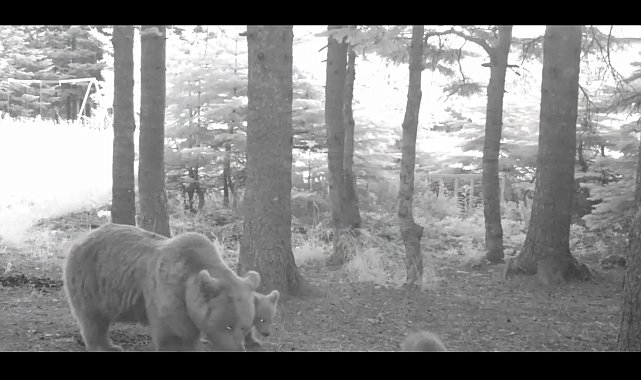Türkiye'nin en büyük kara memelilerinden olan Bozayı'nın (Ursus arctos), yaban hayatı kurulan fotokapanla kayıt altına alındı. Yavru bozayının hoplaya zıplaya ailesinin peşinden koşması ise herkesi gülümsetti.
