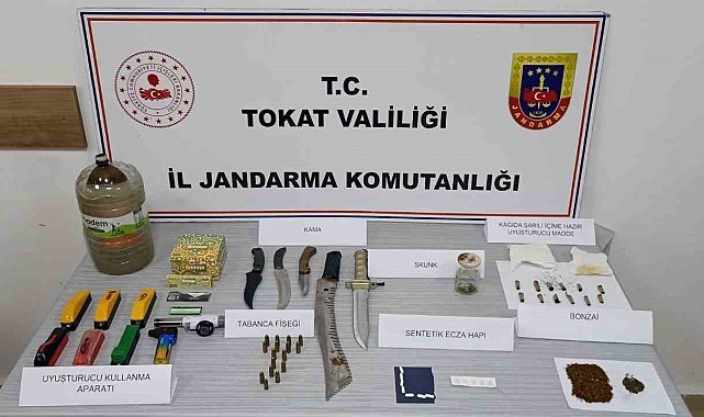 Tokat'ın Zile ilçesinde jandarma ekipleri tarafından düzenlenen uyuşturucu operasyonunda 4 şüpheli gözaltına alındı.Edinilen bilgilere göre Tokat İl Jandarma Komutanlığı ekipleri, Zile ilçesinde bazı şahısların uyuşturucu madde ticareti yaptığı yönünde alınan istihbarat üzerine harekete geçti. Şüphelileri teknik ve fiziki takibe alan ekipler, yürütülen titiz çalışmaların ardından adli makamlardan alınan arama kararı doğrultusunda operasyon düzenledi. Şüphelilere ait iş yerleri ve ikametlerde yapılan aramalarda, 22 gram skunk, 23 adet sentetik ecza hapı, 37 gram tütüne emdirilmiş bonzai, 12 adet jelatine sarılı kullanılmış skunk, 2 adet uyuşturucu kullanma aparatı, 6 adet uyuşturucu sarma aparatı, 19 adet tabanca mermisi ile 5 adet kama ve bıçak ele geçirildi. Operasyon kapsamında gözaltına alınan şüpheliler H.Y., S.T., A.A. ve S.K., jandarmadaki işlemlerinin ardından adliyeye sevk edildi. Olayla ilgili soruşturmanın sürdüğü öğrenildi.